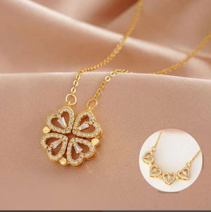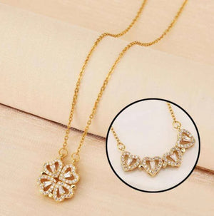 Features a unique magnetic design that allows the pendant to transform between two styles: a four-leaf clover shape (symbolising good luck) and four individual heart shapes arranged in a row (symbolising love).